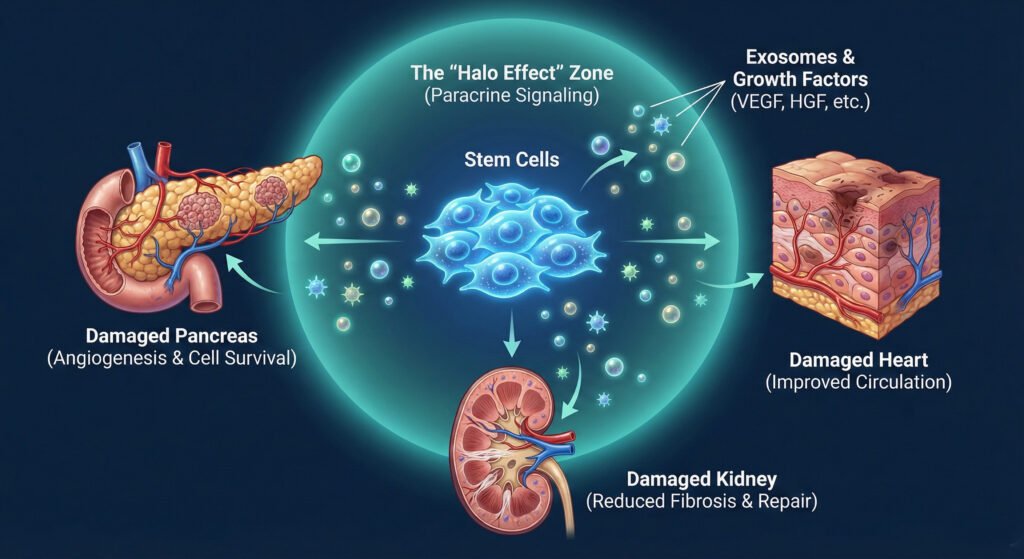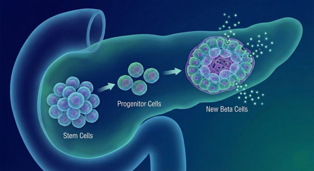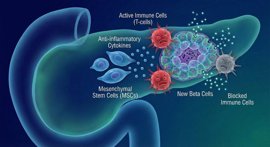 MSCs do this by releasing natural healing signals that may reduce inflammation, support tissue recovery, and encourage damaged beta cells to become more active again.